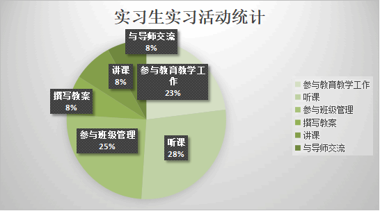 本周,按实习学校及指导教师的安排,开展了多项实习工作,具体实习内容数据如下图统计所示。