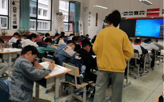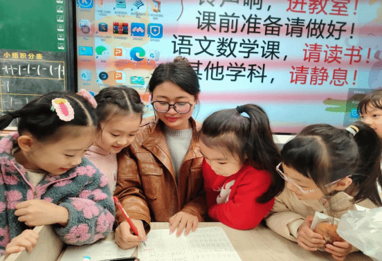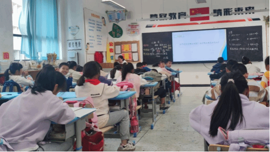课间时分,教室里洋溢着活力与欢笑。实习生带着一年级的员工们,随着轻快的音乐节奏,做起了课间操。实习生一边示范,一边鼓励孩子们认真做操,享受这短暂的放松时光。