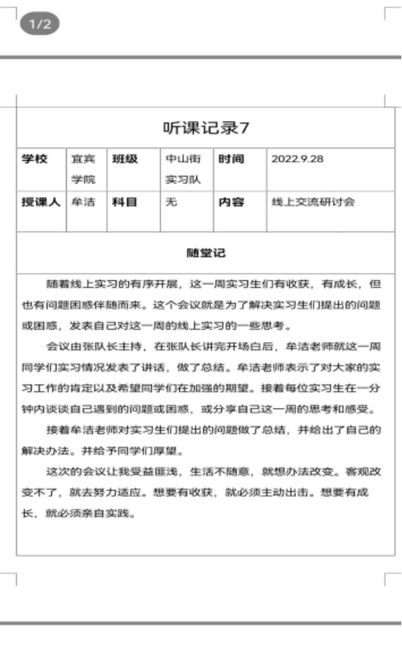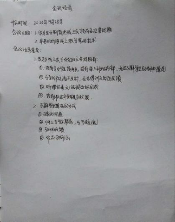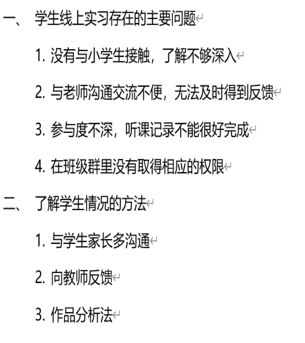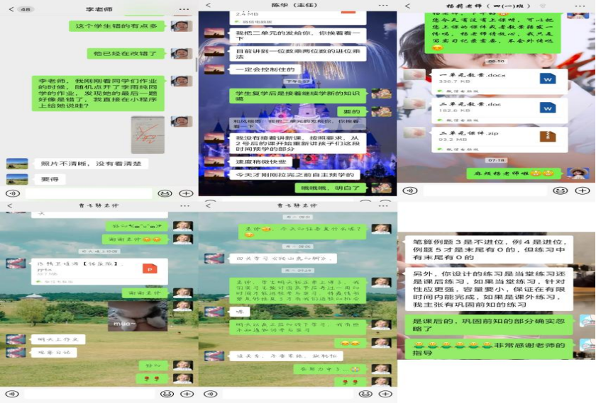 根据“疫情防控”要求,实习生们在线上积极与指导老师沟通,通过听课写听课记录、批改员工作业、撰写教案以及与指导老师或者家长进行交流等实践活动来丰富实习生活,增加实习经验,提高自我能力。