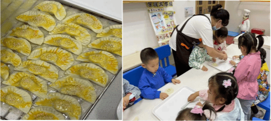 星期四下午,烘焙室里,中班的小朋友在做可口的香蕉派。老师细心地指导小朋友们按照步骤一步一步地来,大家都在很认真地跟着老师做,实习老师则在旁积极协助老师。最后,在老师们的共同帮助下,小朋友们完成了美味的香蕉派,在烘焙室里开心地享受着美味。