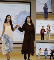 活动第三环节是现场展示同学们亲自设计的扎染服装。穿着自己亲手制作完成的扎染服装,同学们青春洋溢、自信大方的表演,纷纷展现了同学们独特新颖的创意。表演展示活动也赢得了师生们的阵阵掌声。
