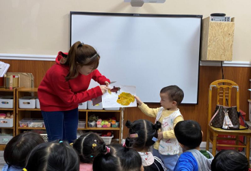 为让幼儿充分感受秋天的氛围,本周幼儿园开展了全园环创任务,同学们和指导老师一起完成。各班在主题墙上增加了以秋天为主题的幼儿绘画作品,通过让幼儿分享制作的树叶贴纸作品,使幼儿更好地感受秋天的气氛,并提高幼儿的语言表达能力。教学活动中,教师开展有关秋天的活动,同学们帮助教师准备材料以及组织幼儿进行活动,保证教学活动的顺利开展。
