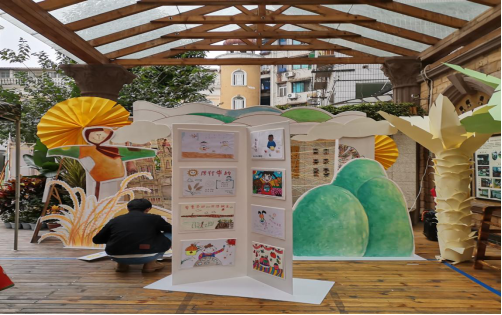2020年11月2日,宜宾市市级机关幼儿园在操场举办了以“光盘行动”为主题的幼儿画展活动。