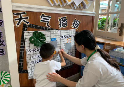 2021年9月23日,实习老师陈珊珊带领大三班的小朋友们体验小小天气播报员。让小朋友们通过体验做天气播报员的过程,了解播报天气需要的内容有今天的日期、今天的温度、今天的风力等。小朋友在活动中不仅了解掌握了对天气播报的知识,还锻炼了自己的口头语言表达能力,能准确的播报天气。