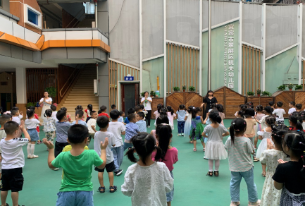 2021年9月22日,今天是中秋假期收假的日子,小朋友们还沉浸在中秋的节日氛围里,在园内高兴地分享了自己的中秋节体验。大班的小朋友还将这股热劲儿带到了早操里,显得格外的兴奋与活力。早操的内容十分丰富,不仅有舞蹈,还有队列变形和跑跳爬的运动。其中实习老师秦容还担任了今天大二班的领操员。