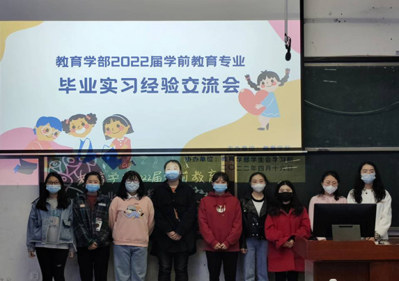 为精准解答即将奔赴幼儿园实习岗位的准实习生对实习工作的困惑,教育学部于2022年4月16日14:30在三教楼A202教室举行了“2022届学前教育毕业实习经验交流会”。