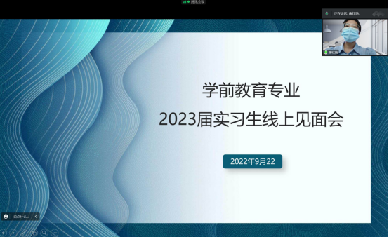 为克服疫情影响,确保2023届毕业生的实习周数,bv伟德国际1946教育学部从9月份开始借助互联网平台召开网上实习会议,启动实习工作。9月22日下午2: 00,学前教育专业18位同学在廖红艳老师的组织下参加了此次会议。