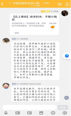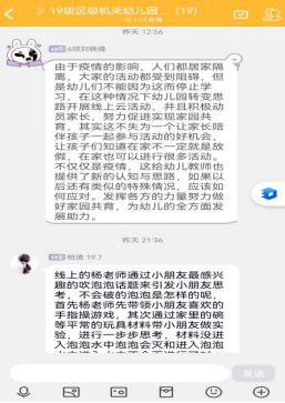 通过对幼儿园开展的各项活动的线上观摩,大家都积极的进行学习、总结和思考,并在群里分享了各自的收获和感悟。