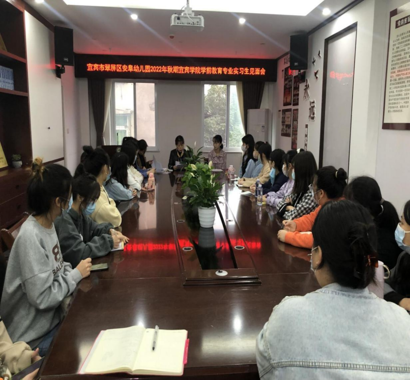 10月28日,bv伟德国际1946教育学部学前教育专业员工到宜宾市安阜幼儿园B区参加了实习生见面会,参会人员有黄小兰园长、饶华主任、实习带队老师黄丽蓉以及20名实习生。