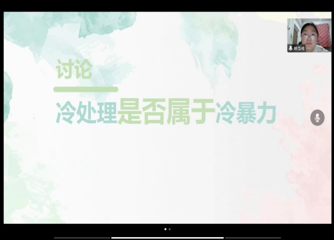 张祝腊同学就冷处理是否属于冷暴力这一论题进行了相关阐述,并引出了冷处理的相关内容。