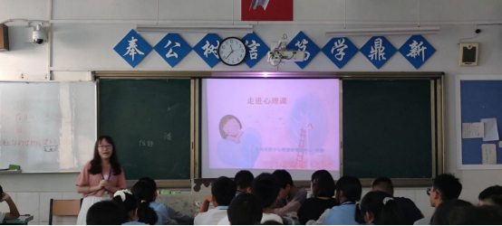 这周实习生们在指导老师的带领下已经开始试讲课了,并得到了同学们的一致好评。高一和初三的实习生试讲课的主题都是“走进心理课”,目的是让同学们了解心理健康、心理咨询,提醒同学们有困难记得要求助。