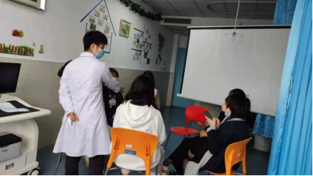 2021年11月2日,陈支那老师来到医院检查我们实习手册,向实习单位指导老师了解我们的实习表现并为我们实习期间遇到的困难给出了建议。
