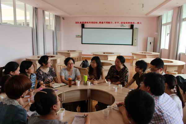 在温雪副董事长和4位心理健康老师的陪同下,老师们参观了四中心理健康中心的个别咨询室、团体辅导室、宣泄室、放松室、沙盘游戏室、图书资料室。在随后的座谈中,双方就四中心理健康教育开展情况、面临的困难、需要得到的支持等方面展开了热烈的讨论。