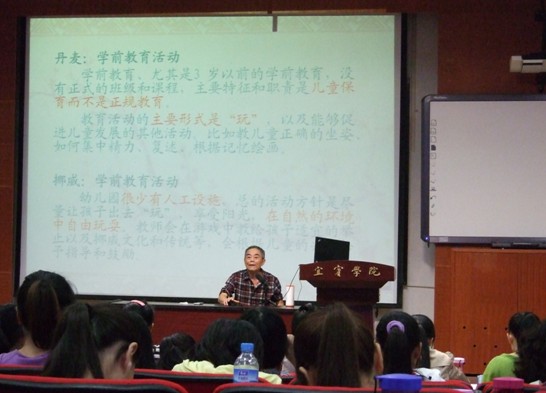 9月28日上午9点,在硕勋楼A座101学术报告厅,bv伟德国际1946的师生与国培学员聆听了吴定初教授题为“从文化视角比较中国、北欧之学前教育”的讲座。吴教授给我们展示了北欧三国学前教育的现状与特点,对中国与北欧的学前教育进行了比较,并为学前专业的师生进行科学研究选题提出了宝贵的建议。吴教授在2个多小时的讲述中没有休息,他用洪亮的声音传达着丰富的学术信息。
