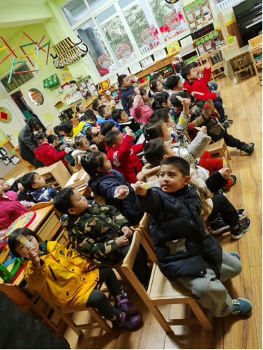 “陈老师”为小朋友们带来了“迎新年”的活动,小朋友们聆听了“年的故事”,大家认真听故事并积极回答老师的问题,知道了年兽、知道了过年的习俗、意义等。陈老师也为小朋友们发了棒棒糖作为奖励,大家挥舞着棒棒糖跟着音乐齐唱《新年好》,一片喜庆的氛围荡漾在所有老师和幼儿心间……