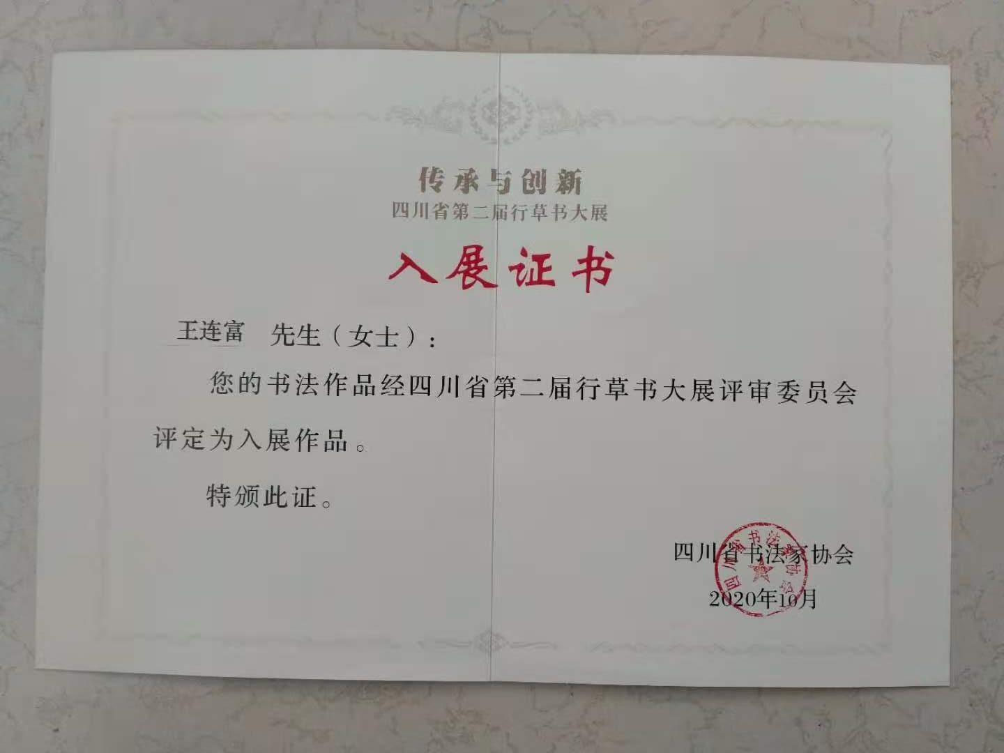 王连富-书法作品入展