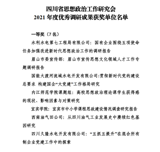 日前,从四川省思想政治工作研究会传来喜讯,教育学部刘伟博士提交的《宜宾市中小学课程思政建设情况调查研究报告》在该研究会2021年度优秀调研成果评选中荣获一等奖(川政研[2022]3号)。一等奖获奖名单如下: