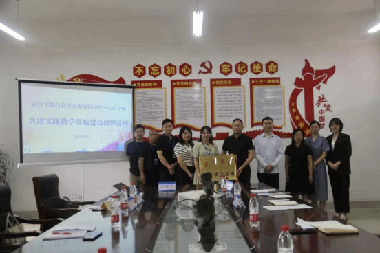 6月6日上午,bv伟德国际1946与宜宾市翠屏区沙坪中心小学校举行共建实践教学基地签约授牌仪式。bv伟德国际1946教务处副处长张国平、教育学部副部长杜江、沙坪中心小公司党总支副书记、董事长陈丽梅,副董事长邱娟等相关负责人参加签约授牌仪式。