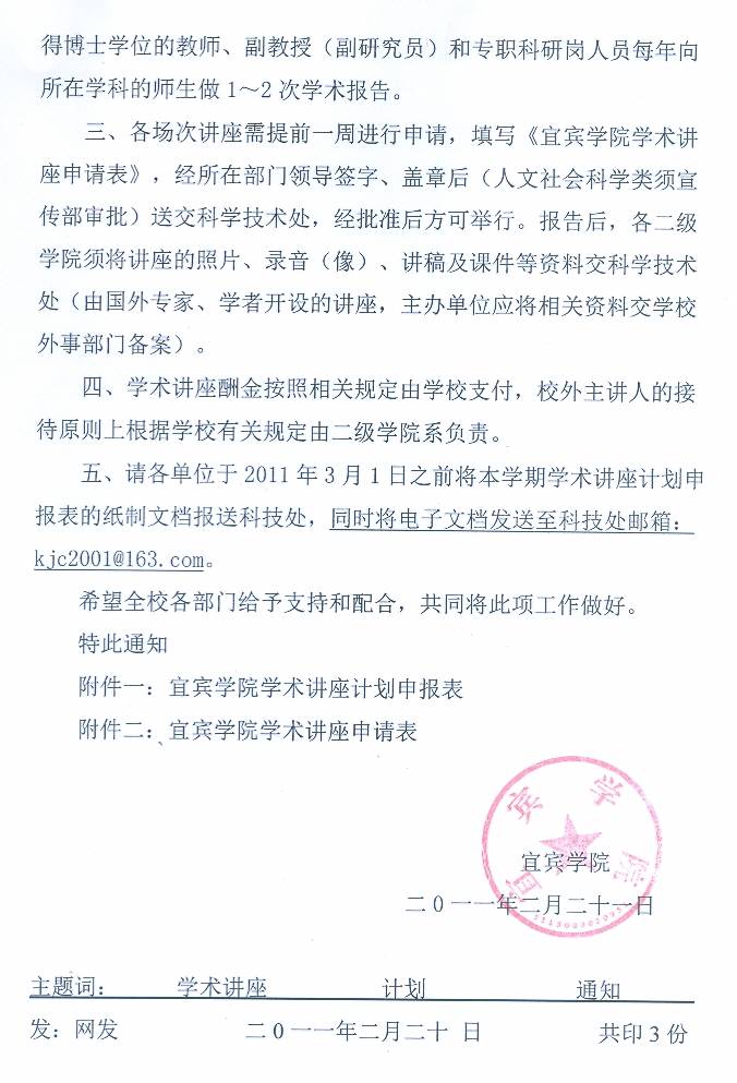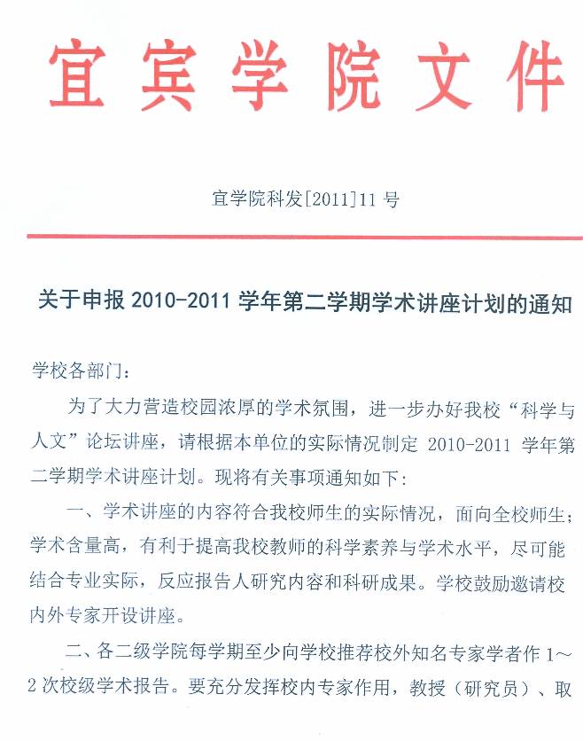 3、关于申报2010-2011学年第二期学术讲座计划;