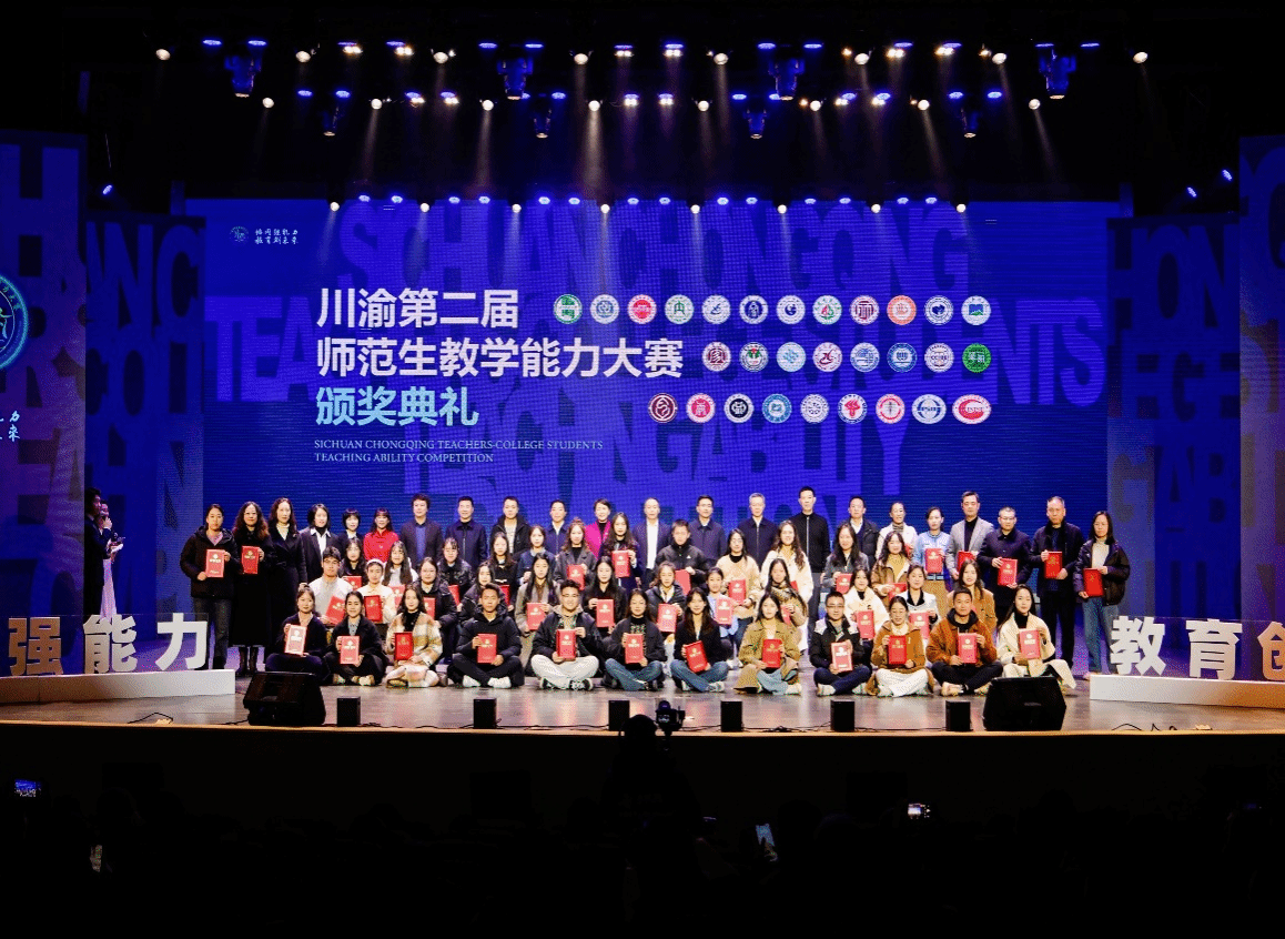 由四川省教育厅和重庆市教育委员会主办、四川师范大学承办的2023年川渝第二届师范生教学能力大赛决赛于2023年11月24-26日在长江师范学院完成,并于2024年1月11日举行颁奖典礼。本次大赛共有西南大学、四川师范大学等川渝地区29所高校参赛,涵盖幼儿园、小学、初中、高中四个学段共30余个学科类别,大赛通过教学设计、课件制作、即席演讲、模拟授课和现场答辩五个环节严格评审,经初赛、决赛两轮角逐后,最终评出一等奖52名、二等奖103名、三等奖159名,优秀指导老师94名。
