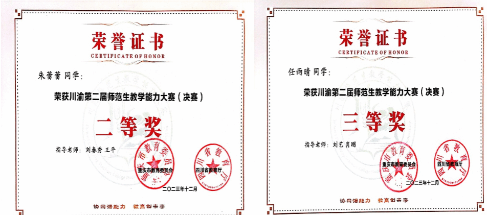 bv伟德国际1946在2023年川渝第二届师范生教学能力大赛中获奖