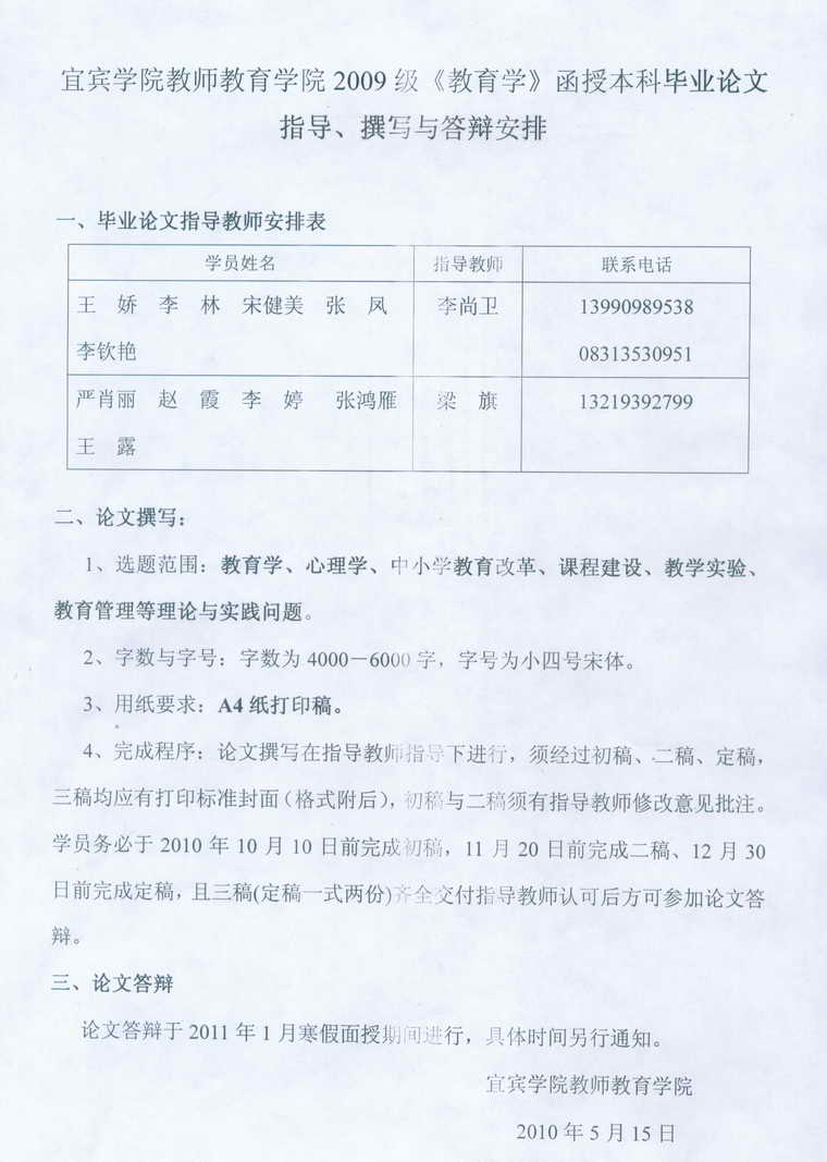 伟德国际1946源于英国2009级《教育学》函授本科毕业论文指导、撰写与答辩安排
