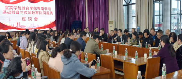 何照强局长对我部到访的领导及教师表示热烈欢迎,并介绍了南溪区基础教育的文化氛围、环境条件、发展定位、培养模式及成果,对我部与南溪区基础教育工作的指导与合作寄予厚望。