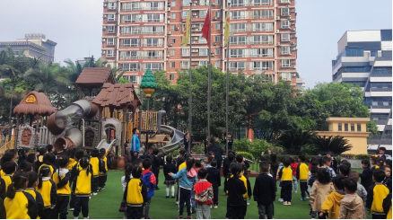 在这充满了生机的早晨,我们又迎来了每周一的升旗仪式。早上9:00,集合音乐准时响起,各班孩子在老师们的带领下,整齐有序地排好了队伍,等待着升旗仪式的开始。而芒果班的小旗手们也早已准备就绪,严阵以待,护卫着鲜艳的五星红旗。鲜艳的五星红旗徐徐升起,全场的小朋友们伴随着乐曲唱起了国歌,歌声虽然稚嫩但依然嘹亮。国旗迎风飘扬,昭示着孩子们在幸福的时代快乐健康成长。