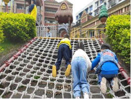 春天的气息飘满了整个幼儿园,小朋友们也在这样生机勃勃的春天里茁壮成长。本周幼儿园的主题活动是寻找春天。在中班集体教学活动中,公司实习教师袁泉用几张图片将春天呈现在小朋友的面前,所有的小朋友都沉醉在春日的景色里。随后在实习教师黄薪颖老师的带领下,小朋友们用卡纸制作相框,在幼儿园里搜集春天,并把春天紧紧锁在自己的纸上。大班老师带领小朋友们一边巡逻整个幼儿园观察春天的变化,下左图为小朋友通过攀爬,观察攀爬区周边的春天变化。