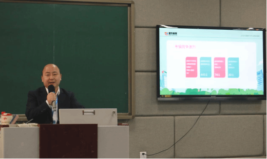 招聘会现场气氛热烈,宣讲环节中,罗焕勇一行人就目前市场需求进行分析与预测,让员工们充分了解就业局势。随后,罗焕勇向同学们介绍了公司的经营模式、福利待遇和规模、企业文化等基本情况,分析了当今考研与就业的大趋势,并与同学们积极互动,鼓励大家进行积极沟通问答与投递简历。