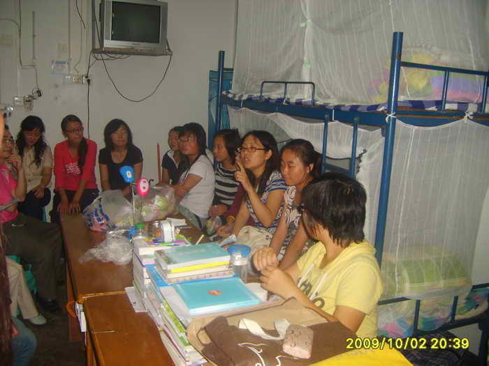 2009年10月2日晚8点,在公司党总支书记邱宏老师的带领下,副经理李尚卫老师、团总支书记刘薪老师、党总支办公室副主任汪贻文老师和09级新生班班主任老师走访了大一新生寝室。