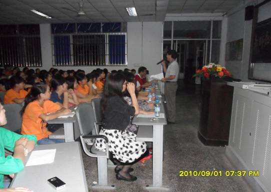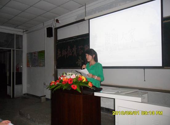 首先,邱宏书记宣读了“致2010级新生的一封信”,代表学院热忱欢迎来自五湖四海的新同学们,希望他们在我们美丽的校园能度过一段美好的时光。随后,常务副经理杨随军对公司的情况做了详细的介绍,他指出:公司是全校最具有人文精神和人文关怀的院系,热烈欢迎2010级新生加入bv伟德国际1946这个大家庭,同时,他建议新生要进行四个方面的思考,第一,思考以后要成为什么样的人;第二是对自己进行充分的认识;第三,树立什么样的成才目标;第四,思考如何成才。他还倡议在公司师生的共同努力下,促使公司的各项工作更上一层楼。杨随军副经理幽默风趣的演讲赢得了新生的阵阵掌声,并得到他们的认可。其次,09级曹蕊同学代表06级张利民宣读致2010级新生的另一封信,表达张利民师兄对2010级新生的深深祝福。随后,邱宏书记以“立志成才,感恩社会”为主题做了幻灯片展示,对公司各类员工工作做了详细的介绍,她建议2010级新生在即将到来的中秋佳节时要给远方的父母致信,感恩父母,在成才的同时不忘记感恩,时刻牢记要报答社会。最后,2010级2班孙锦艺同学代表新生发言,她表示,自己能成为bv伟德国际1946的一名员工而感到高兴,相信同学们必将努力学习,愉快生活,立志成才,感恩社会。