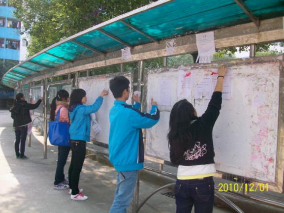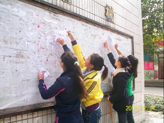 2010年12月1日中午12:40,公司青年志愿者队在校青队的带领下对校园里的张贴栏进行了清理。