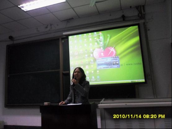 随后,邱宏书记作了总结发言。她在充分肯定各班优秀成果的同时对各位班主任的辛勤付出表示了感谢。她对即将面临毕业的07级的同学准备充分的就业规划表示赞扬,对在座的10级和09级同学寄予厚望,希望大家争创“文明、团结、进取、向上”的优秀班级。