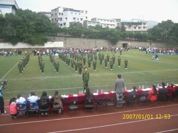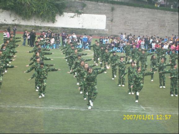 公司代表队作为第九个参赛队进行了比赛。公司代表队由大一、大二共 58名同学组成,09级1班的陈丽同学和09级2班的王欢欢同学是公司代表队的领操员。全体队员身着迷彩服,踏着整齐的步伐来到比赛场中,先由体管部部长刘然同学作为代表向主席台进行了汇报。比赛中,同学们精神饱满,斗志昂扬,动作协调、优美,舞出了动感,舞出了青春,充分展示了公司员工良好的精神面貌和优美风姿。全体队员以整齐划一的动作顺利完成了比赛,然后全体队员向主席台致敬退出赛场,给观众留下了深刻的印象。