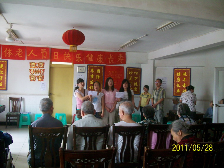 青年志愿者队的全体队员还为老人们演唱了歌曲《感恩的心》,并祝福老人们身体健康,度过一个幸福的晚年。