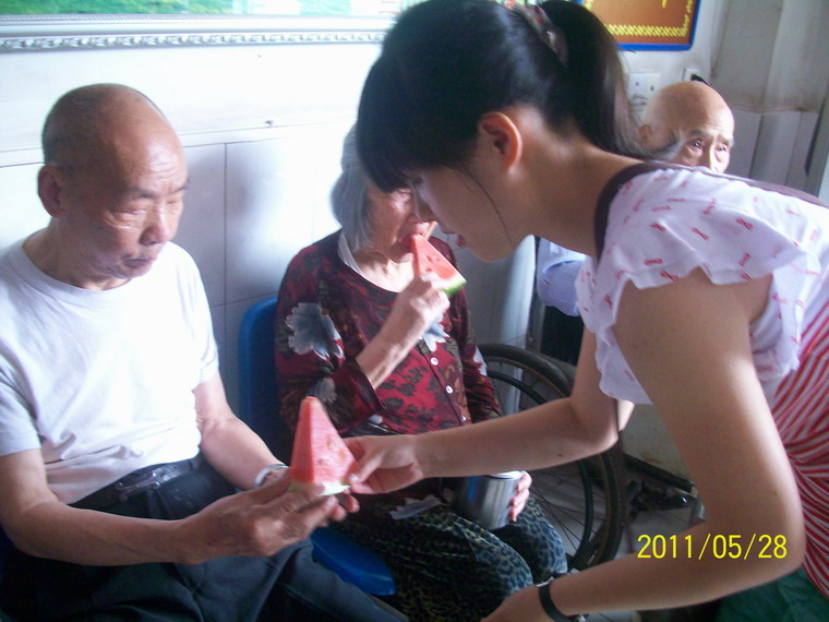 2011年5月28日早上9:00,公司青年志愿者队带上水果,甜点等来到康乐老年公寓看望公寓里的老人。