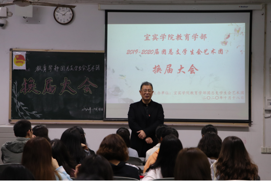 2020年10月18日晚18:00,教育学部在一教203举行团总支员工会、艺术团员工干部换届大会。党总支副书记赵政一,专职辅导员唐辉,及相关员工干部参加了此次大会。