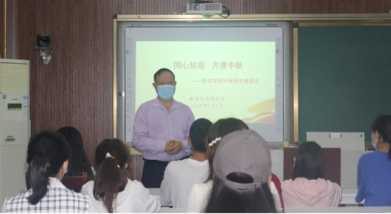 2022年9月9日,正值中秋佳节来临之际,因疫情导致在校员工无法与家人团聚,为让大家能在校感受到节日的氛围,并充分了解员工目前的学习生活情况,教育学部特开展“同心抗疫 齐度中秋”师生座谈会。教育学部部长何会宁、正处级组织员蒋泓洁、专职辅导员王勤、教师张育菡及83名在校员工参加了本次座谈会。