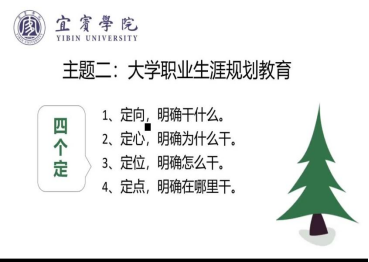 主题二:李伟从“四个定”方面引导新生树立正确的职业规划。指导新生为自己将来的目标找好“定向、定心、定位、定点”,并让大家认识到职业规划的重要性。并提出要求,以《给大学四年的一封信》为主题,将想法及规划用信件方式表达,做到科学谋划,定向未来。