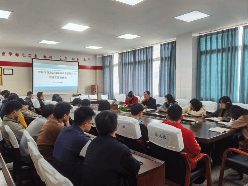 3月24日,教育学部在博雅楼B506室召开2023届毕业生困难群体就业推进会。党总支副书记刘薪(负责工作)、副书记李伟、学工办全体人员及2023届48位就业困难毕业生参会。会议由李伟主持。