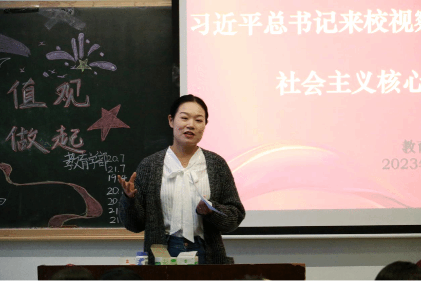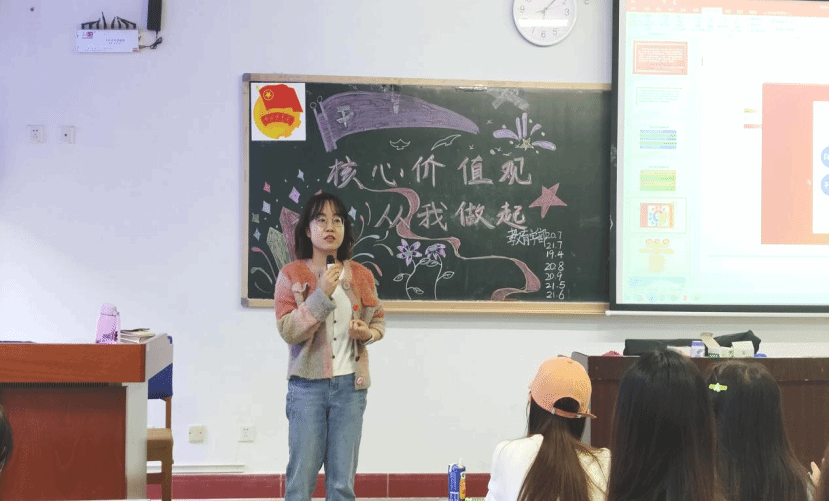 青年是引风气之先的社会力量,青年的价值取向决定了未来整个社会的价值取向。一个民族的文明素养很大程度上体现在青年一代的道德水准和精神风貌上。习近平总书记在2022年“五四”前考察中国人民大学时指出:“广大青年要做社会主义核心价值观的坚定信仰者、积极传播者、模范践行者,向英雄学习、向前辈学习、向榜样学习,争做堪当民族复兴重任的时代新人”。为进一步贯彻落实习近平总书记在人大的视察讲话以及到公司视察时候的重要指示精神,强化员工的社会主义核心价值观,增强员工对核心价值观的理论认同、情感认同、行为认同。4月9日晚,教育学部各班辅导员于硕勋楼开展了以“核心价值观,从我做起”的主题班会。