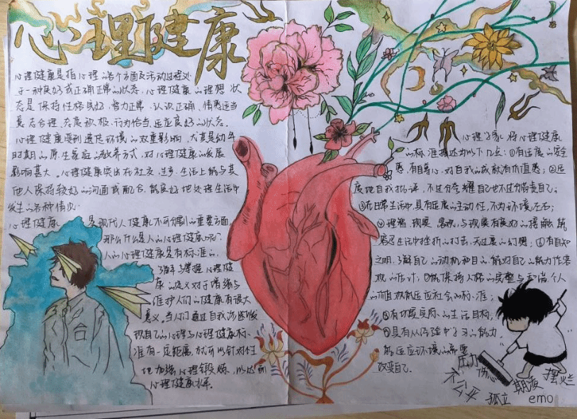 本次活动同学们积极响应参与,大家紧紧围绕主题,借助手中的画笔绘制成了一幅幅内容丰富、版面精美、精心设计的手抄报作品。每一份都蕴含了同学们的热情与才华,多角度的展示了员工的心灵世界。手抄报的内容丰富多样,有的介绍心理健康的含义、重要性、标准;有的告诉同学们要保持积极健康的生活态度,学会悦纳自己;也有写下想对自己和他人说的发自内心的话语……一幅幅赏心悦目的作品传递出的是一颗颗积极阳光的心灵。