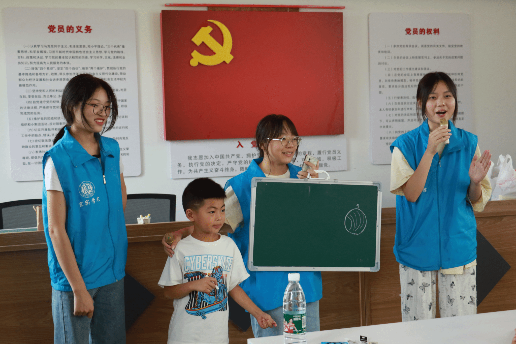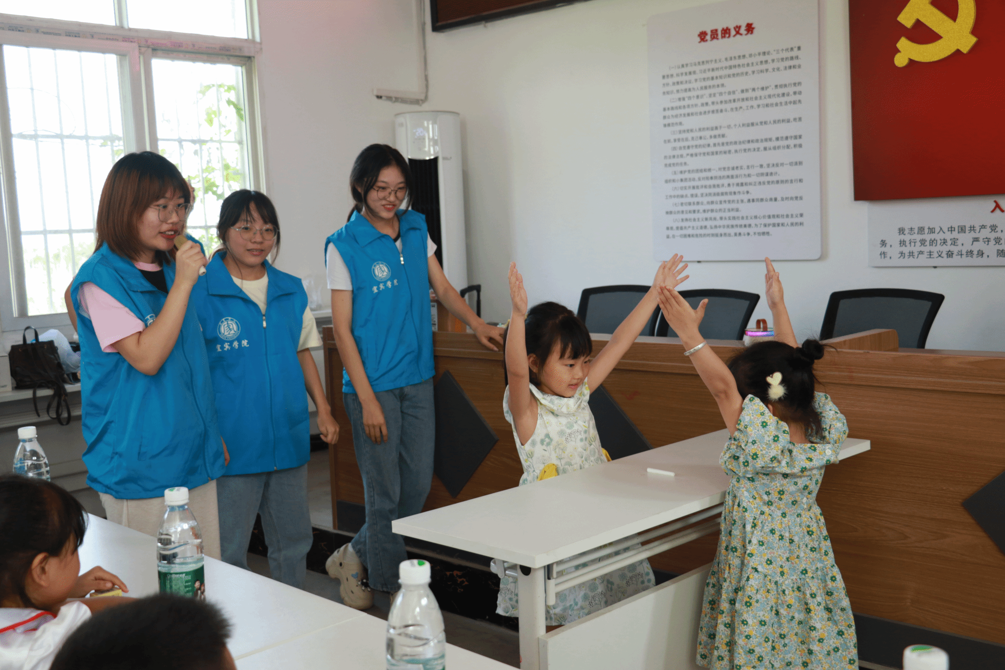 在活动的温馨落幕之际,全体志愿者携手在场的孩子们,齐声高唱歌曲《少年中国说》,歌声中洋溢着青春风采,也共同寄托着志愿者们对少年们朝气蓬勃、勇往直前的期许。歌声与心声共鸣,汇聚成一股温暖而强大的力量,激励着每一个少年向着更加美好的未来进发。