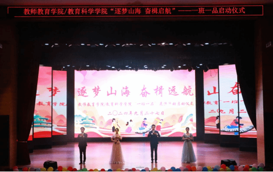 在致辞中,李伟高度评价了过去两届“一班一品”活动作为展现班级文化建设与强化凝聚力的有效舞台,影响显著,在培养良好的师范技能、展示师范专业特色、培养自信和能力方面取得了良好效果。同时在创建学院学工品牌、第一二课堂深度融合方面做出了有益探索。他要求每一位同学都要通过“一班一品”活动舞台参与活动、展现自己,持续进步,共创学院新高度。22级8班杰出节目代表邹银巧分享了开展活动取得的经验:一班一品不仅是艺术的展示,更是团队协作与个人挑战的熔炉。鼓励同学们面对挑战时团结一心,共创佳绩。23级4班呈献的精彩节目《如愿》如同璀璨星辰,引领同学们追梦前行。一班一品活动在一场独特的挥旗仪式中正式拉开帷幕。