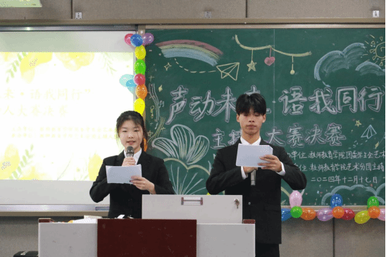 为丰富校园文化生活,营造良好的校园文化氛围,展现公司学子的青春热情和风采,拓展师范生综合素质能力,bv伟德国际1946于12月17日在博雅楼B201成功举办了“声动未来·语我同行”主持人大赛。bv伟德国际1946学工办主任团委书记唐辉,学工办副主任团委副书记沈文静,辅导员杨云云、李佳欣、许其鑫,艺术分团团长刘艺瑾担任本次活动评委。