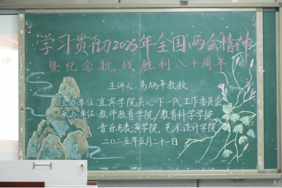 讲座伊始,易炳平紧扣2025年全国两会最新政策方向,深入阐释新时代国家发展战略与青年使命的紧密关联。他强调,两会精神是国家治理的指南针,更是青年学子前行的思想灯塔。结合宜宾市发展现状,他指出在两会精神引领下,国家、社会及学校都将迎来更辉煌的未来。在纪念抗战胜利八十周年环节,易炳平教授回顾抗战历史与中国发展历程,剖析抗战精神对当代社会的启示,号召师生以史为鉴、居安思危,厚植家国情怀。讲座尾声,他引用“历史是最好的教科书,也是最好的清醒剂”,勉励青年铭记抗战历史,争做向善向上的新时代青年。