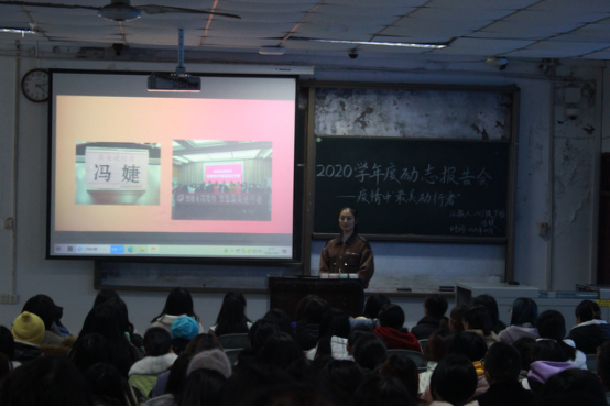2020年11月16日,教育学部17级9班优秀个人代表冯婕向同学们交流汇报了抗疫期间的经历。