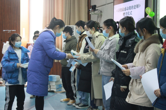 为了推进员工对师德的理解,学习优秀教师的事迹,进一步加强员工的感恩教育.2020年12月10日13:00,教育学部在博雅楼B座201举行了寻找最感动我的老师系列活动之赠书仪式。党支部副书记刘薪、专职辅导员沈文静、唐辉、杨云云、王勤老出席了此次赠书仪式。
