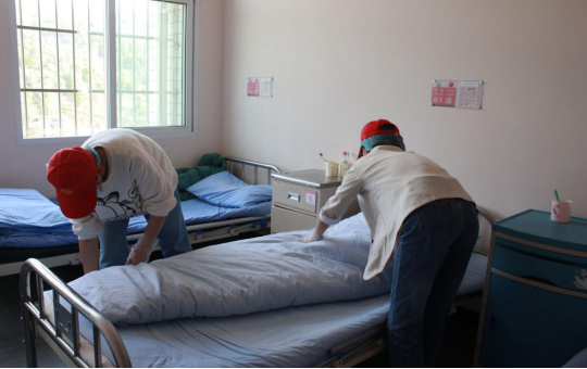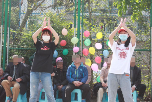 教育学部的老员工志愿者们同病人们一起表演节目。精彩的表演给病人及医护人员带来了欢笑。随后,志愿者们分为两组,一组在医护人员指导下打扫病人们的寝室卫生;另一组与病人们一起游戏并制作简易手工品。志愿者们与病人们近距离接触,收获的是一份可贵的情谊。